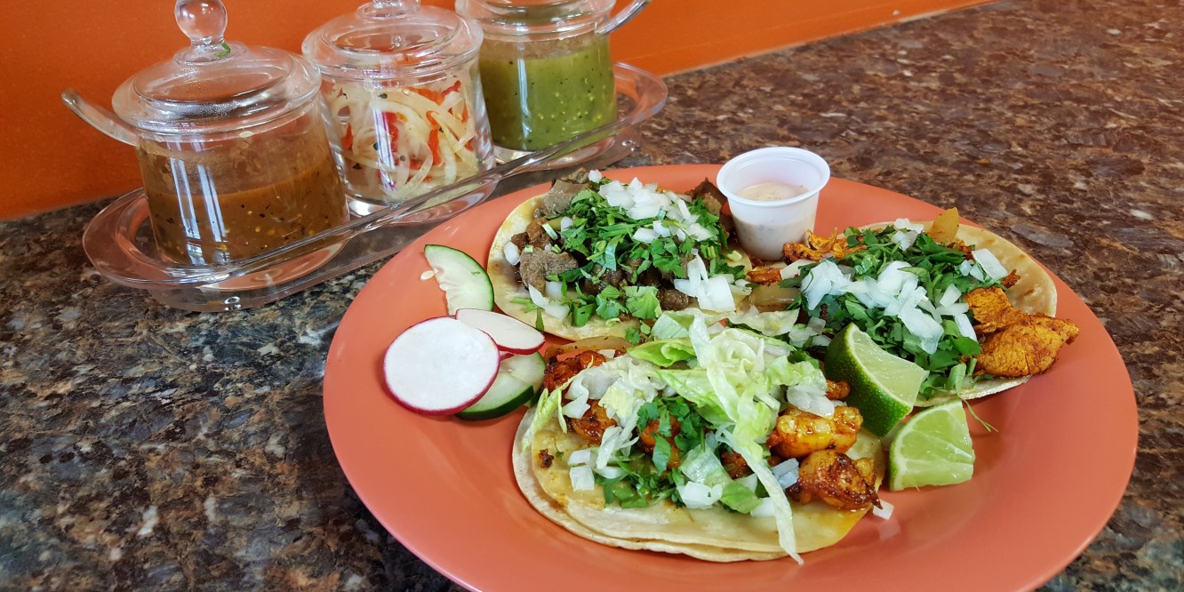 We order two tacos: the chicken and the lengua (beef-tongue, because it’s something you can’t get everywhere). The girls behind the counter twist my arm, not very hard, to try their newest menu addition in the taco category — shrimp. Assured that “it’s really good,” I get that too. Gladly so: The shrimp taco turns out to be the best of the three, though they’re all delicious. (There are two other new menu options we didn’t try: Flautus de Pollo y Carne and Chocoflan.)