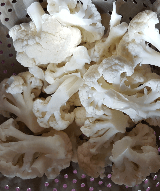 To start, we chop a head of cauliflower, discarding the stems and leaves for compost. In a large pot, we grill the florets in 1 cup of water, for 15 minutes. But you could boil it on a stove-top just as well. So why grill? To be outside, having seldom left the house or yard in over a week. We add scant poblano peppers, chopped, and diced onions. For Japanese curry, onions are key; and it’s what we have at hand.