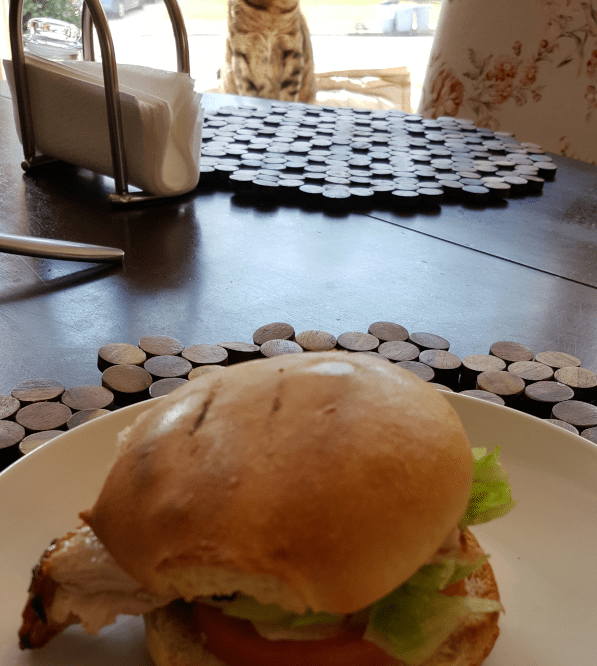 We enjoyed the dressed chicken-breast sandwich shown at top with a nice double IPA from Stone Brewing called “///Fear.Movie.Lions”. The stylized nomenclature is derived from the clever what3words global pinpoint-addressing system. The beer is brewed in Richmond, Virginia (also, apparently, in Escondido, California), at 8.5% ABV. It has a nice hay color and nose with a bit of citrus (orange? pineapple?), certain hoppiness; a big, tropical taste with some bitterness; and there’s a dryness and a dirtiness to it.